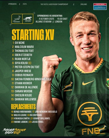 One big talking point ahead of kick-off will be if fly-half Sacha Feinberg-Mngomezulu can pick up where he left off last week after an absolutely sensational performance in which he scored 37 points—the most by a South African in a test match since Percy Montgomery in 2007. SFM slotted two penalties and eight conversions, as well as helping himself to a hat-trick of tries. Worth noting: these are his only tries for the Green and Gold.