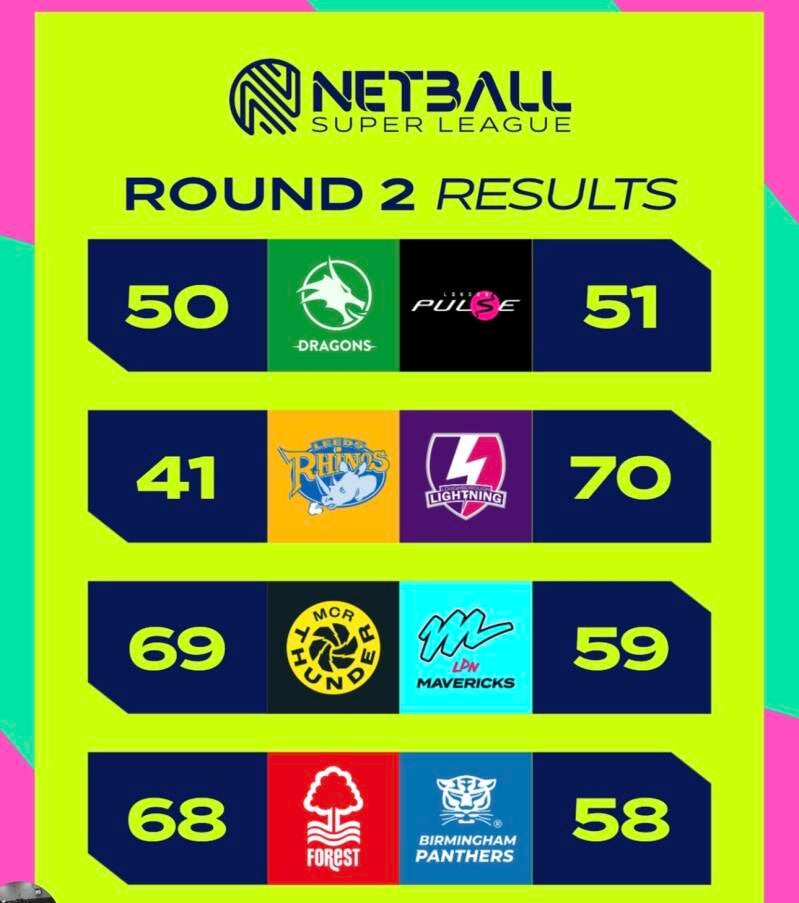 While Manchester showed significantly more promise than in Round 1, Mavericks began "grinding the gears" in the second quarter, finishing the period only one goal behind Thunder's quarter score. At halftime, it was 35–25. Mavericks caused some doubt in the Thunder camp during Q3, but the Manchester side eventually found their groove, increasing the lead to 18. Despite the deficit, Mavericks piled on the pressure in the final quarter to reduce the gap to 10. The final score stood at 69–59, meaning the London side narrowly missed out on a losing bonus point. Eleanor Caldwell was awarded Player of the Match for a stunning display in attack.